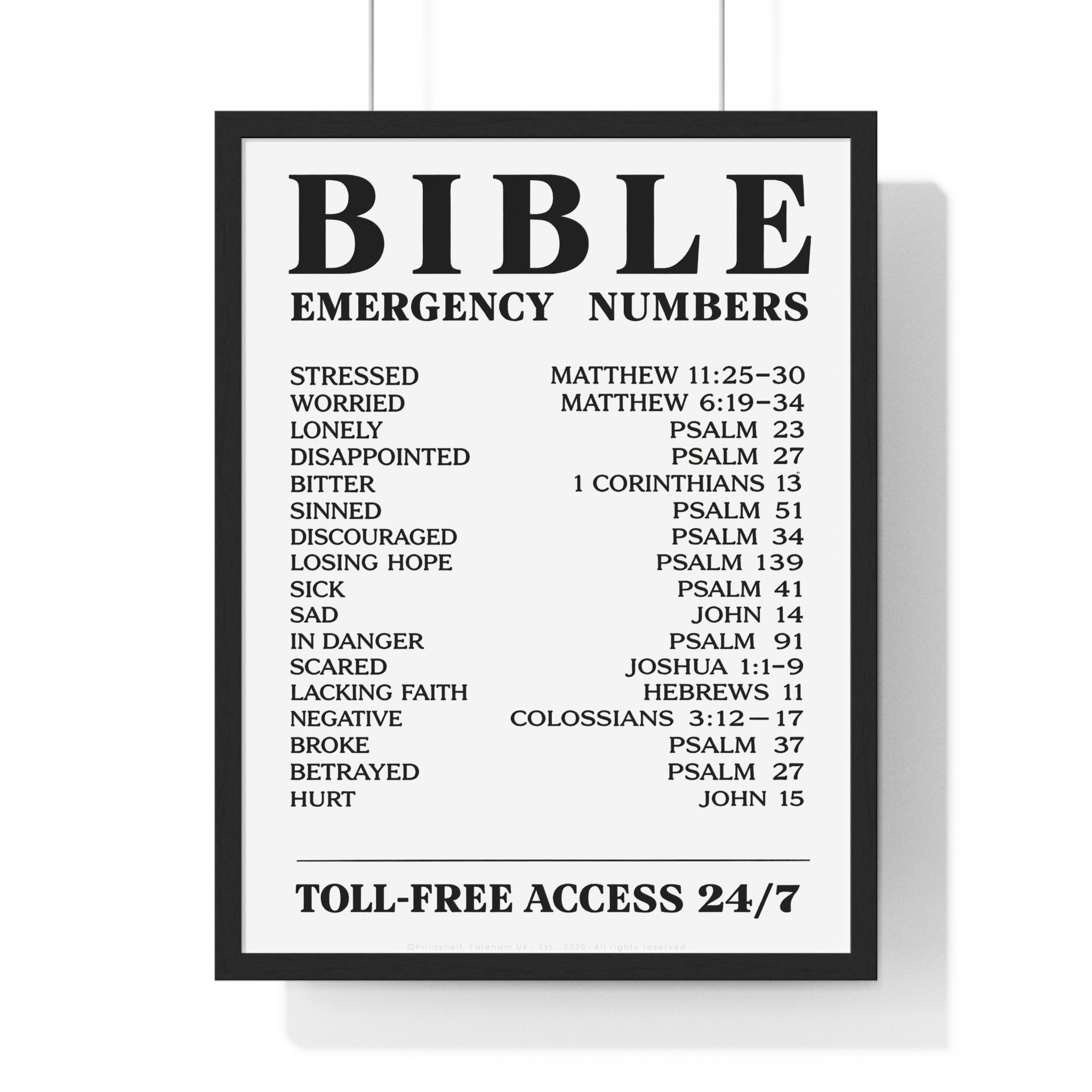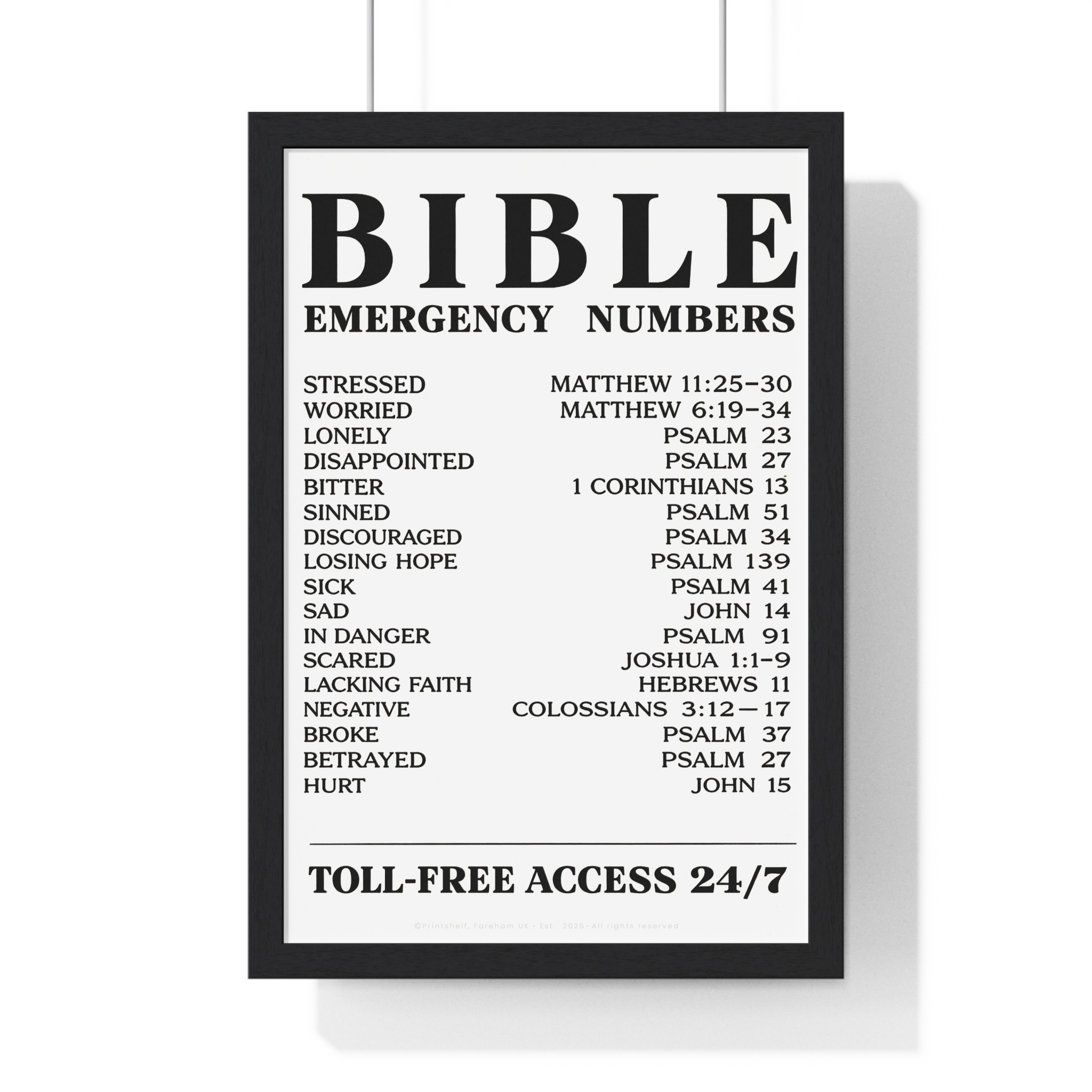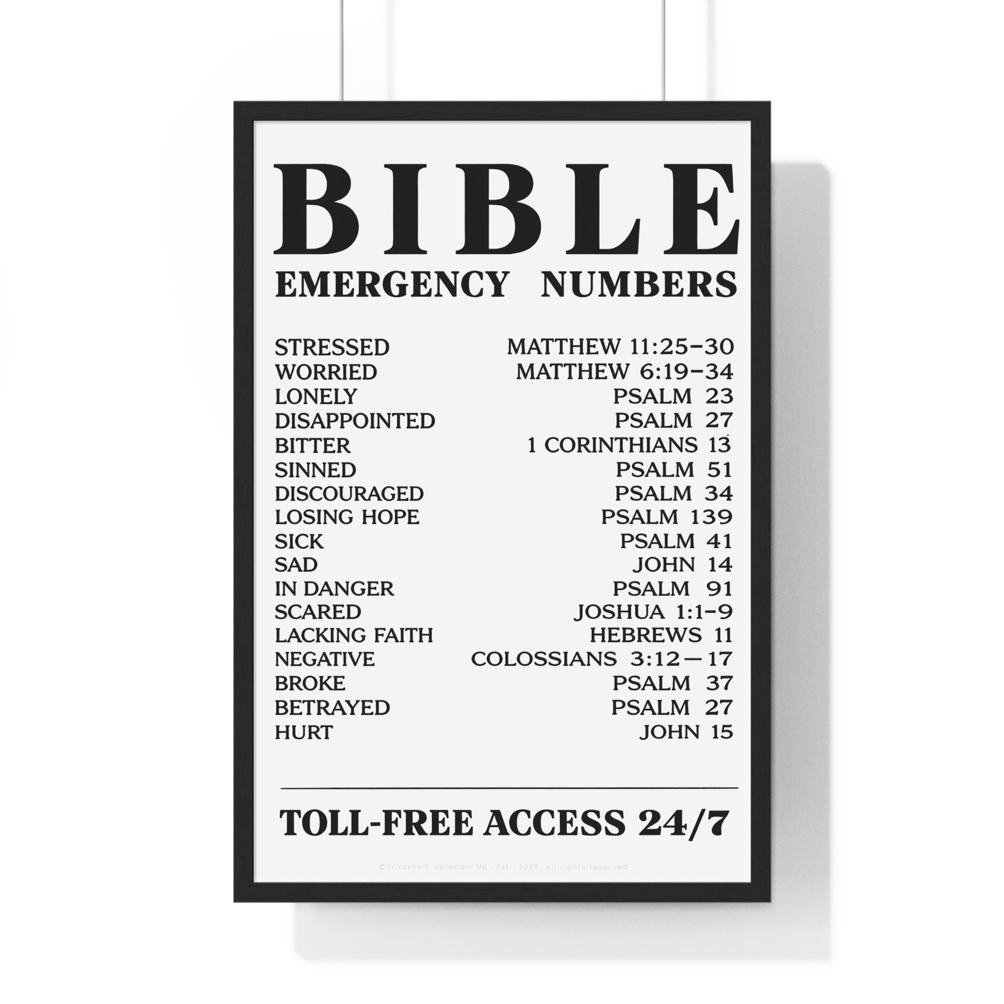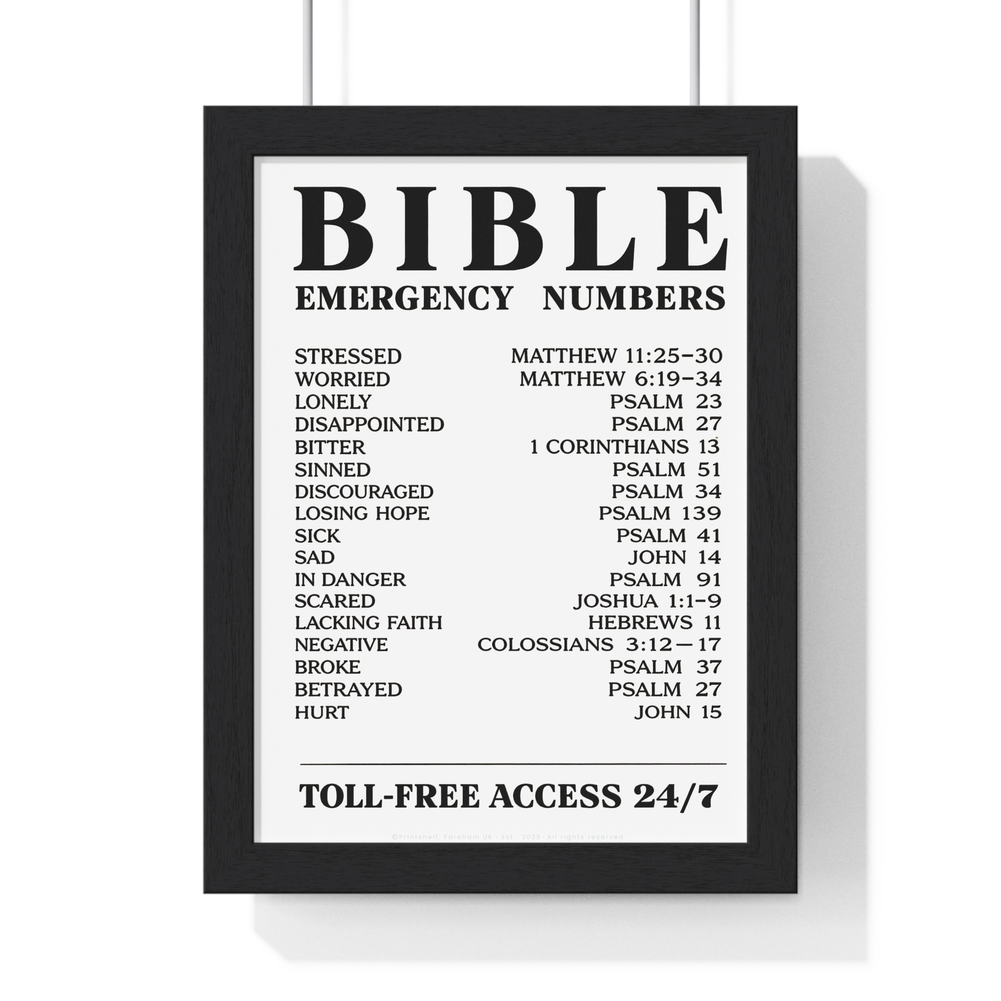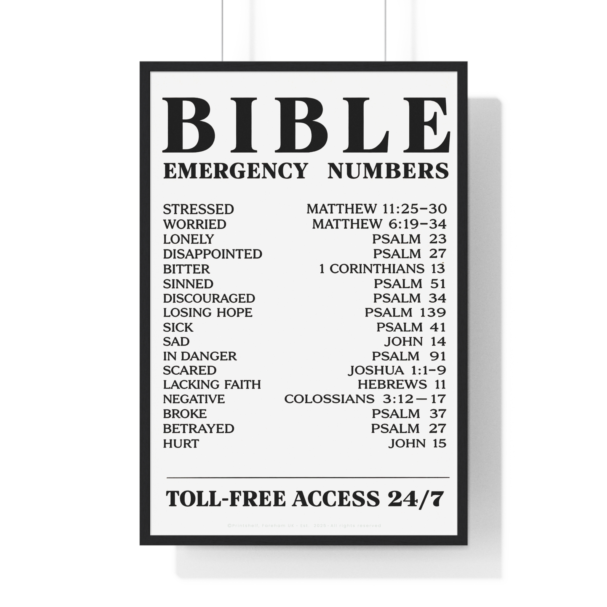 Be the first to review “Bible Emergency Numbers Poster — Framed Inspirational Scripture Wall Art”