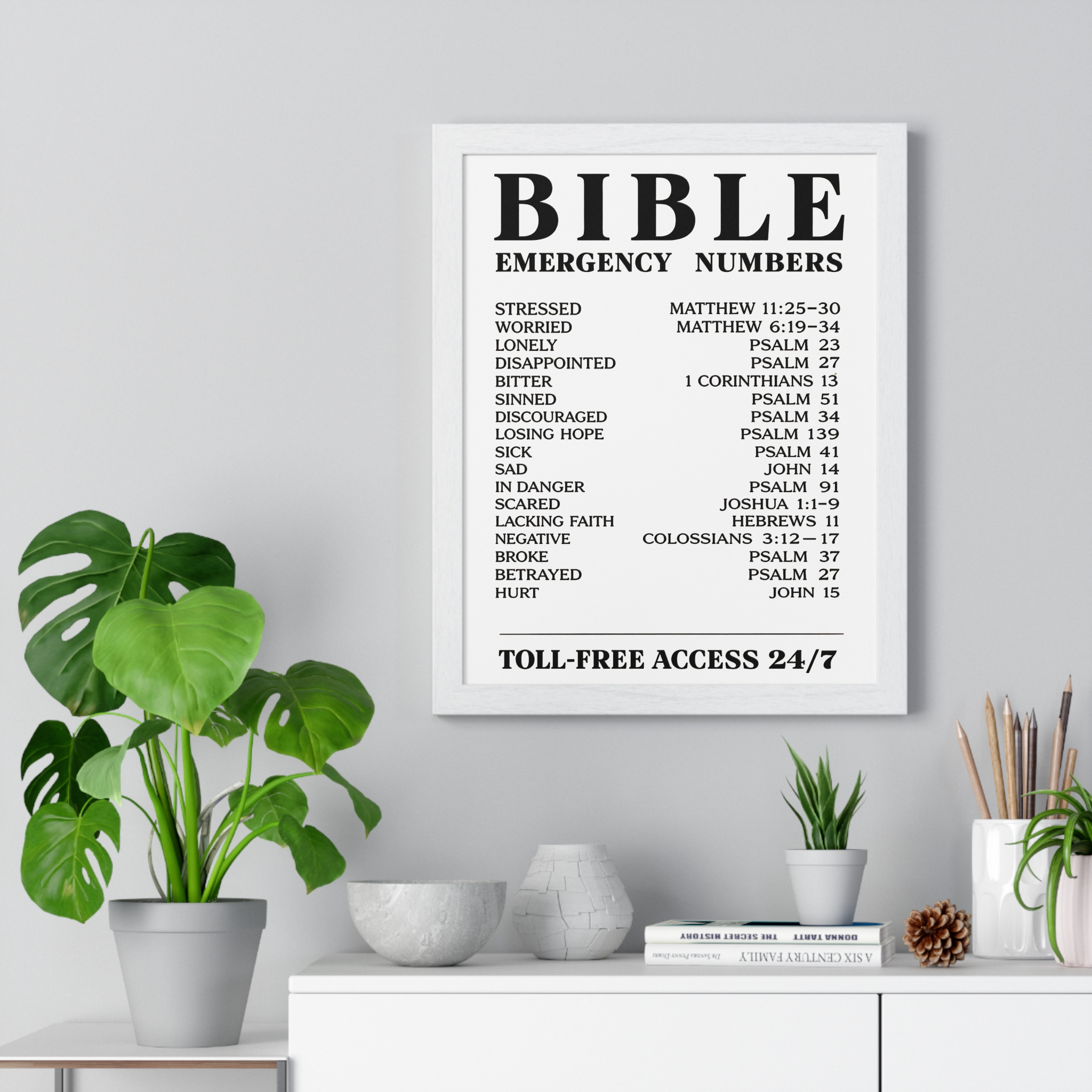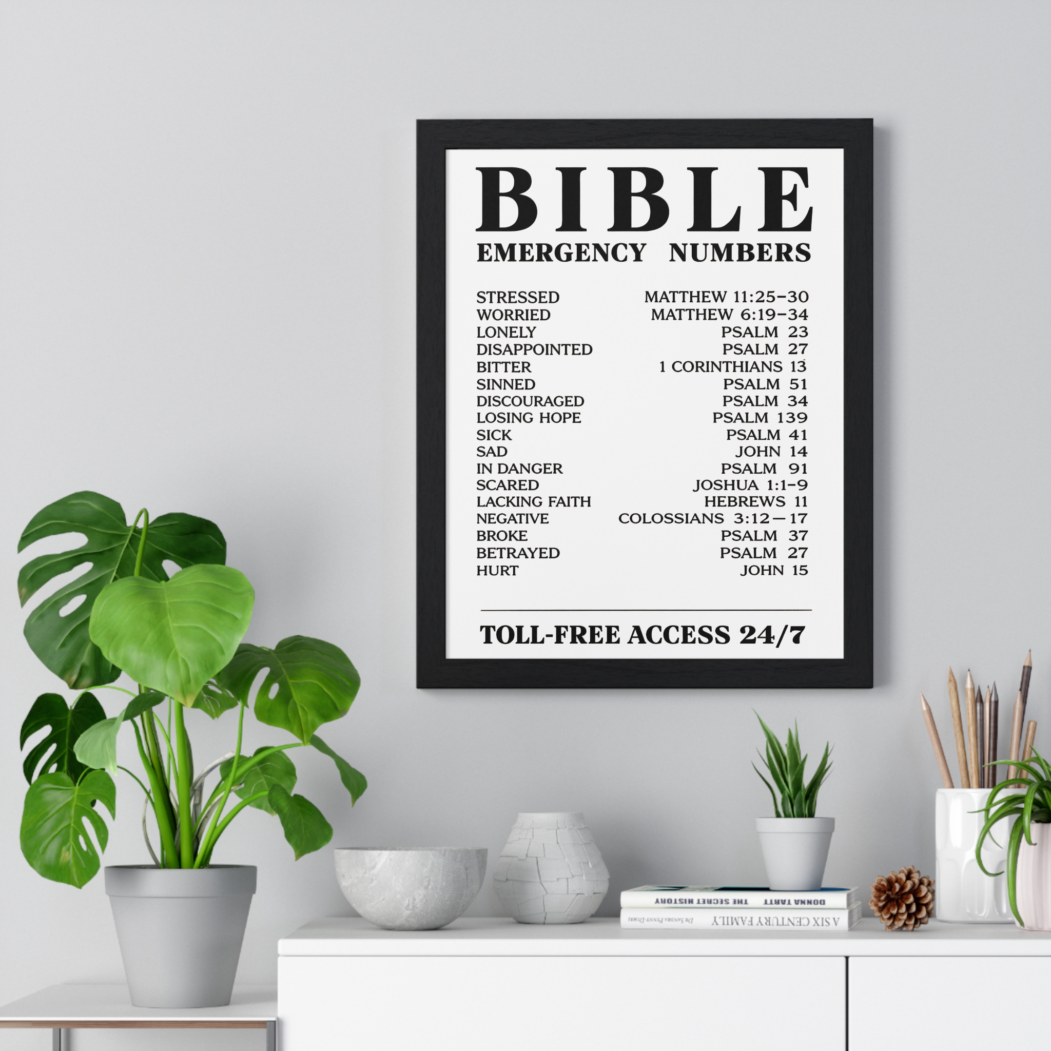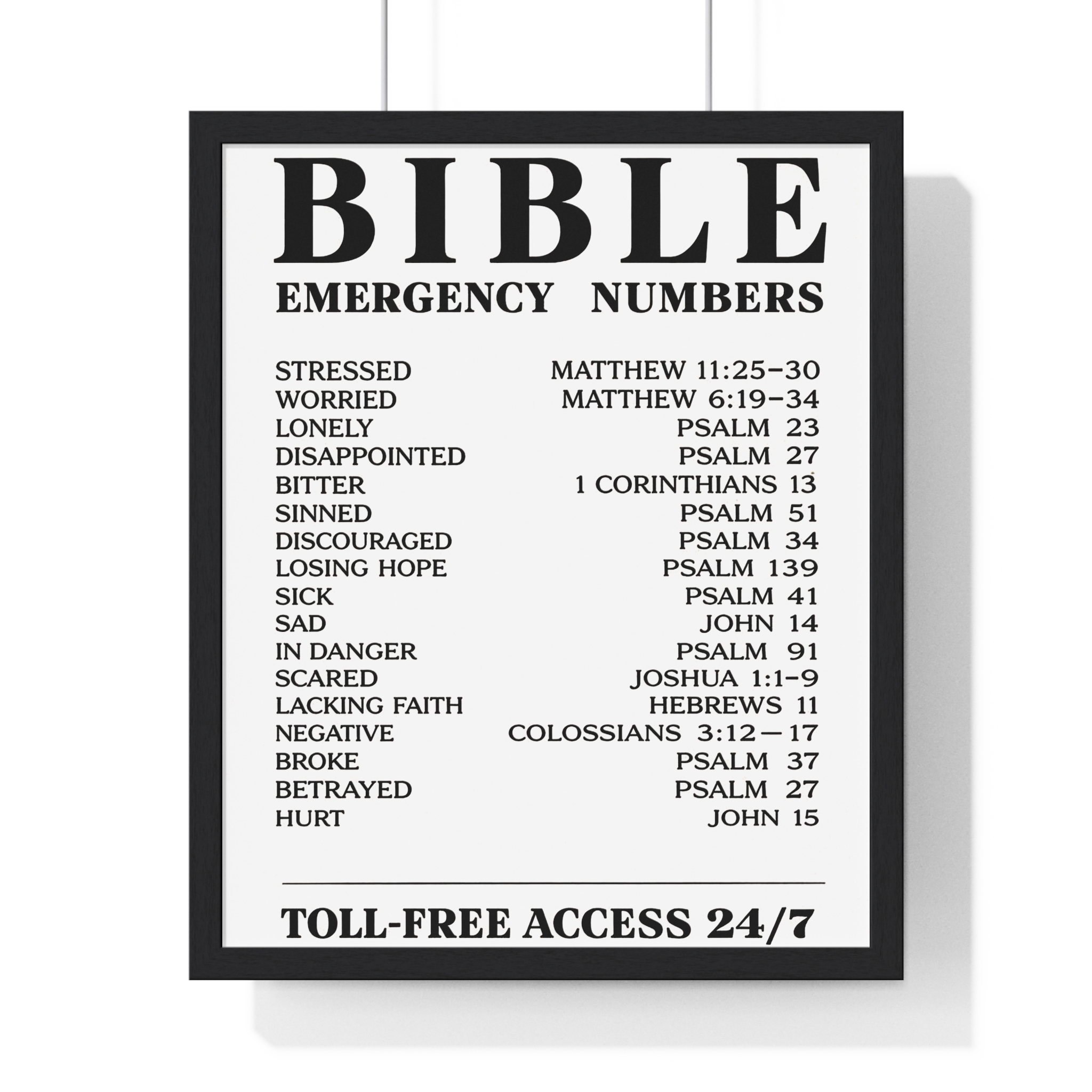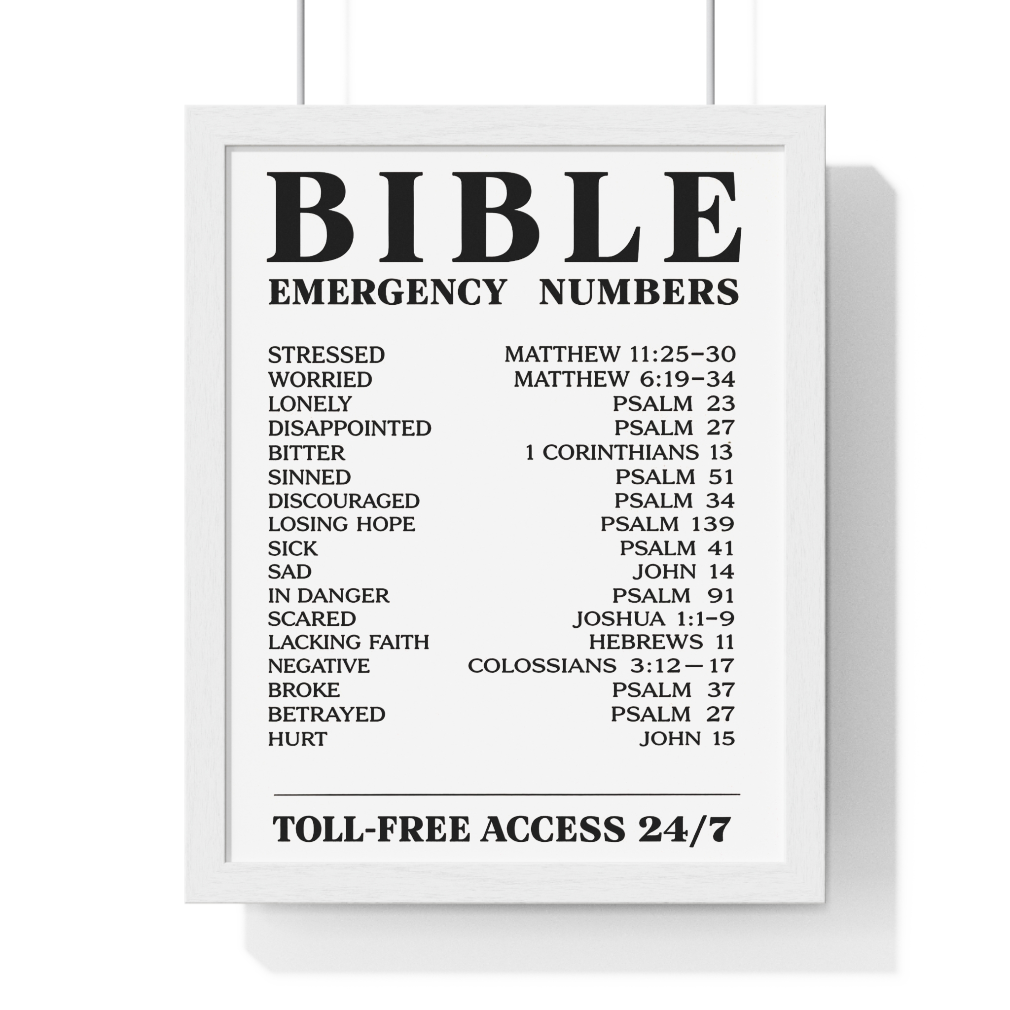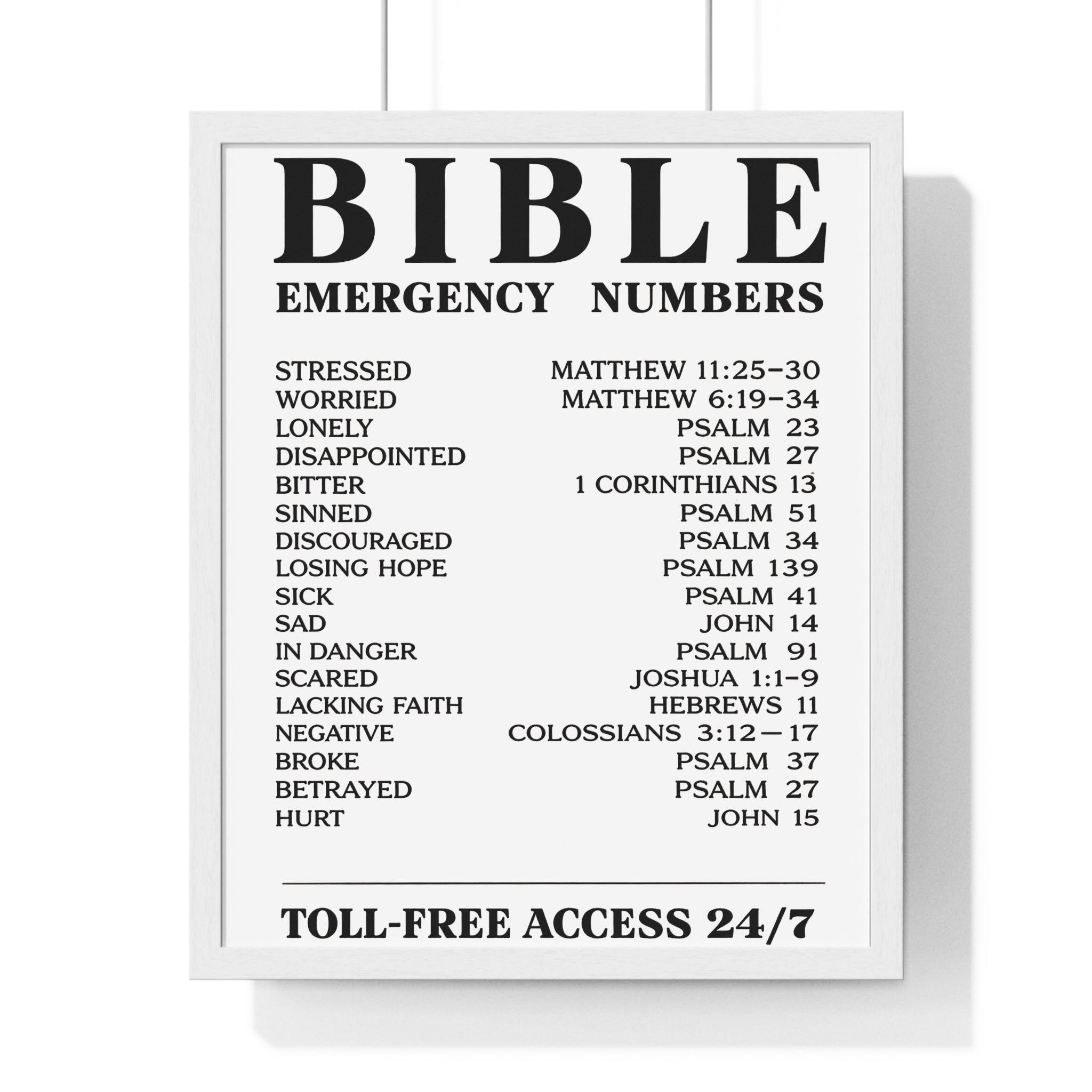 Bible Emergency Numbers Poster — Framed Inspirational Scripture Wall Art