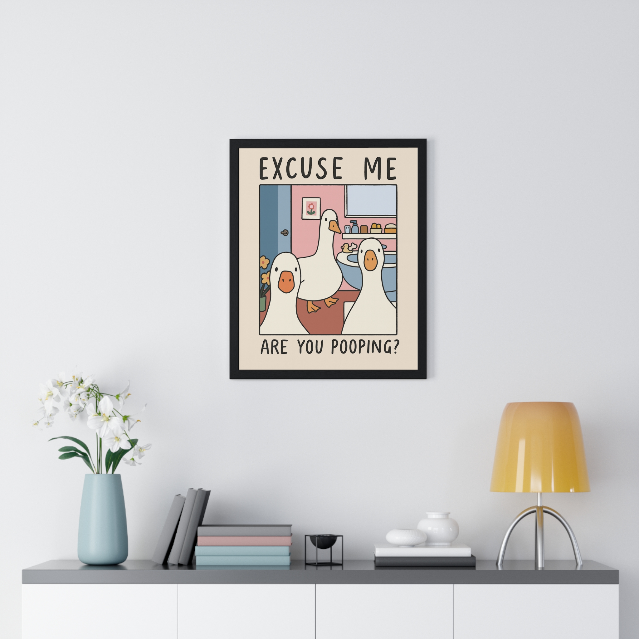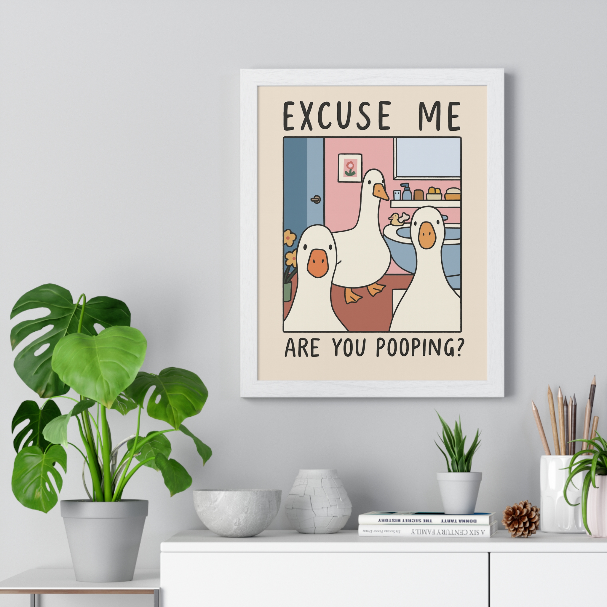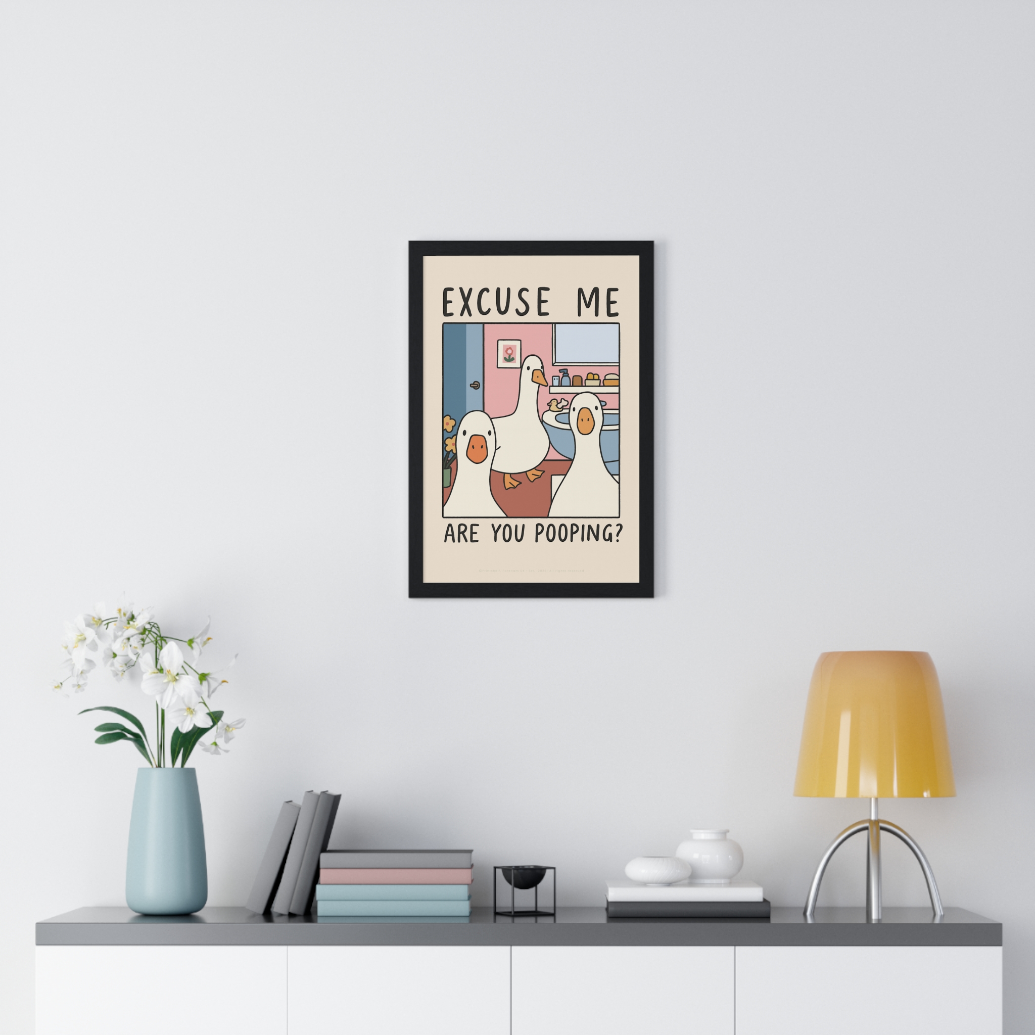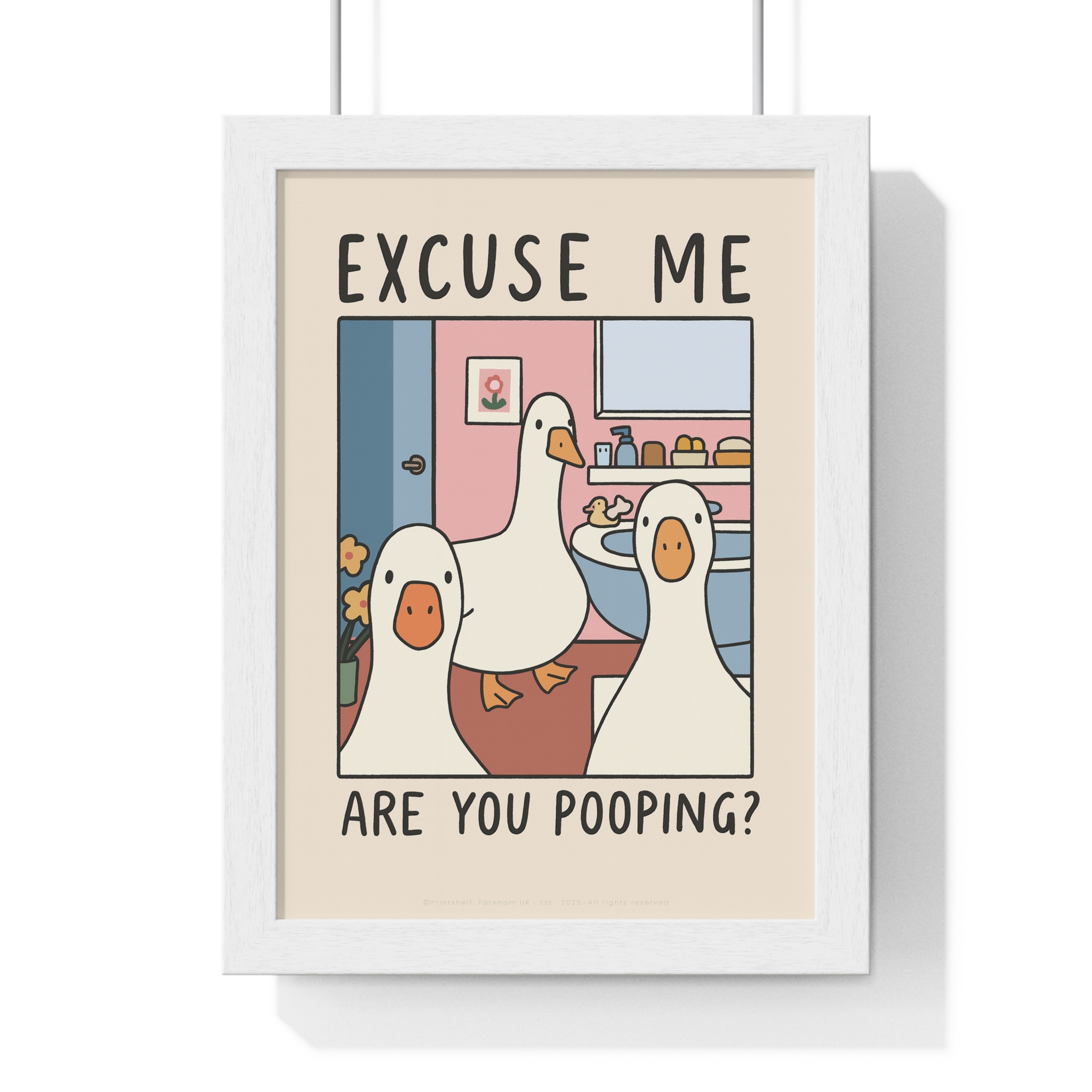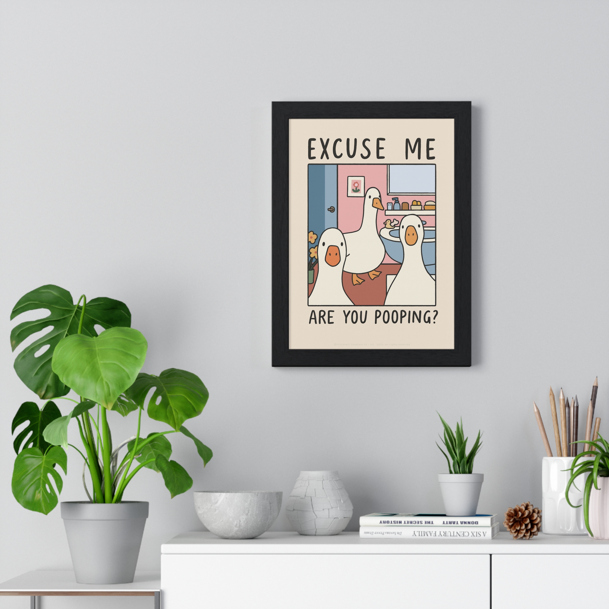 Three curious geese, pastel colors, and a cheeky question — this vertical framed poster brings playful charm to a bathroom, hallway, or cozy nook. Printed on archival, museum-grade matte paper with vivid pigment inks, the artwork stays bright and crisp while the plexiglass front keeps the surface clear and protected. A sleek wooden frame (choose black or white) and pre-installed hanging hardware make it ready to display the moment it arrives. Small enough to tuck into a powder room, large enough to anchor an entry wall — it adds warmth, humor, and a hand-drawn feel to everyday spaces.